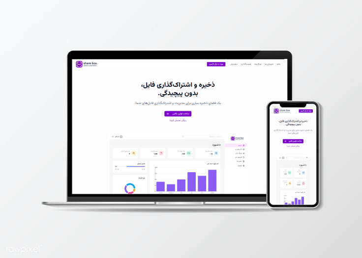 وب سایت شِیر باکس تکنولوژی: Laravel, Nextjs, TailwindCss نوع وب سایت : خدماتی زمینه فعالیت : فایل کلودینگ آدرس سایت : sharebox.ir